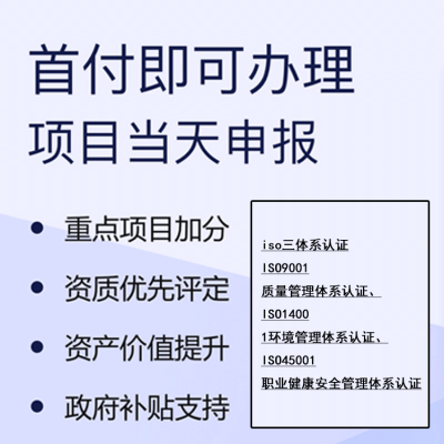 三体系认证是指ISO9001认证、ISO14001认证、ISO45001认证。