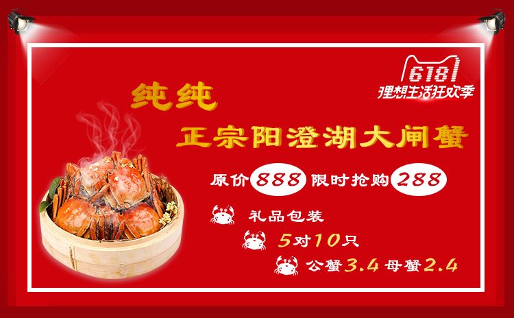 一切不谈价格的促销都是耍流氓,虽然处于预售阶段,但是本次企达的折扣力度之大!价值888元的阳澄湖大闸蟹限时抢购只要288元;平时看着流口水的美味,这次终于可以剁手了。
